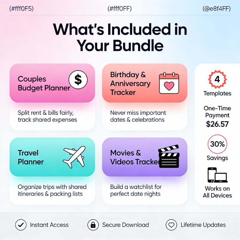 Couples Budget Planner • Birthday & Anniversary Tracker • Travel Planner • Movies & Videos Tracker