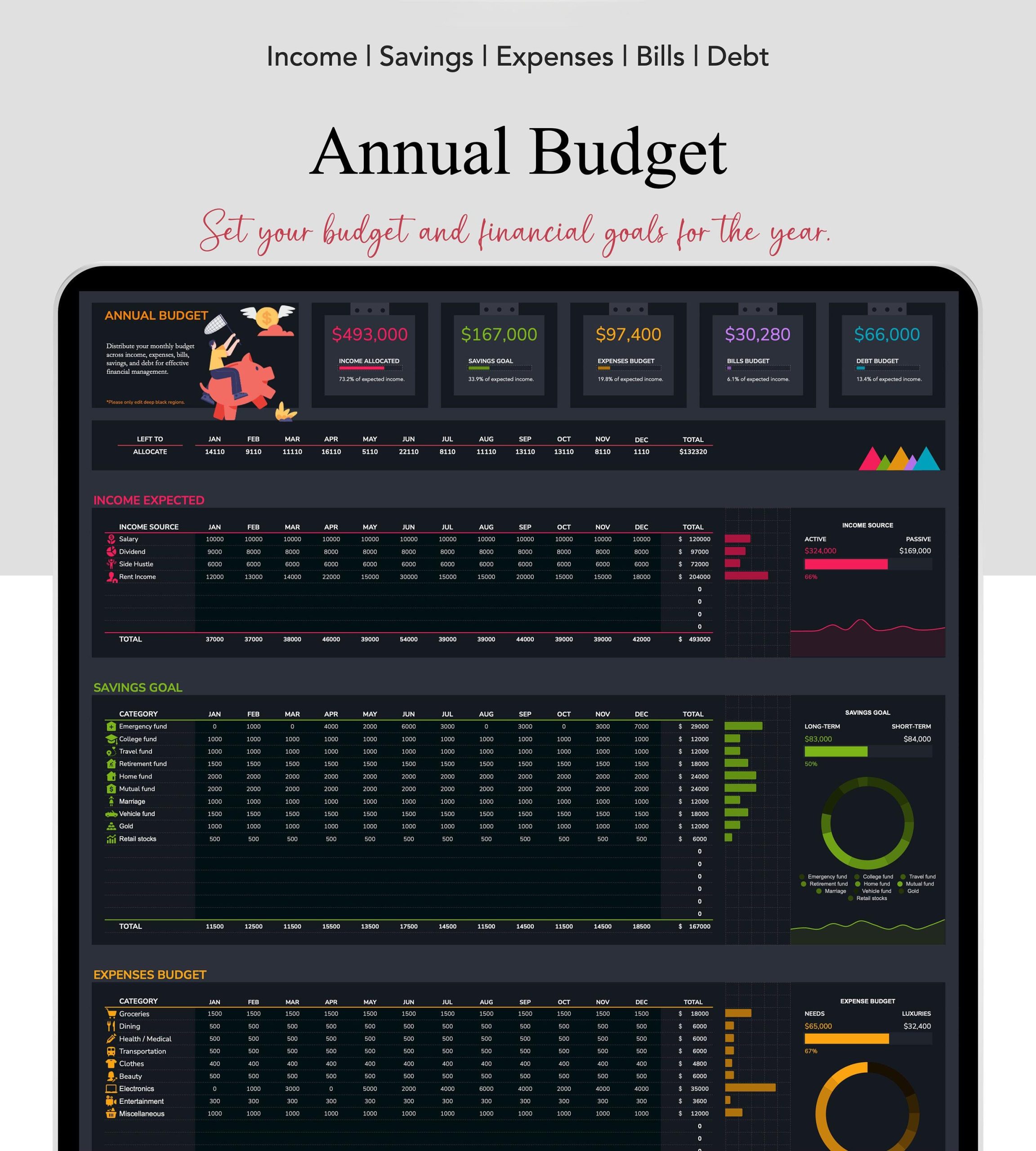 Complete Finance Dashboard: Budget + Debt + Savings + Bills — All in One Smart System.