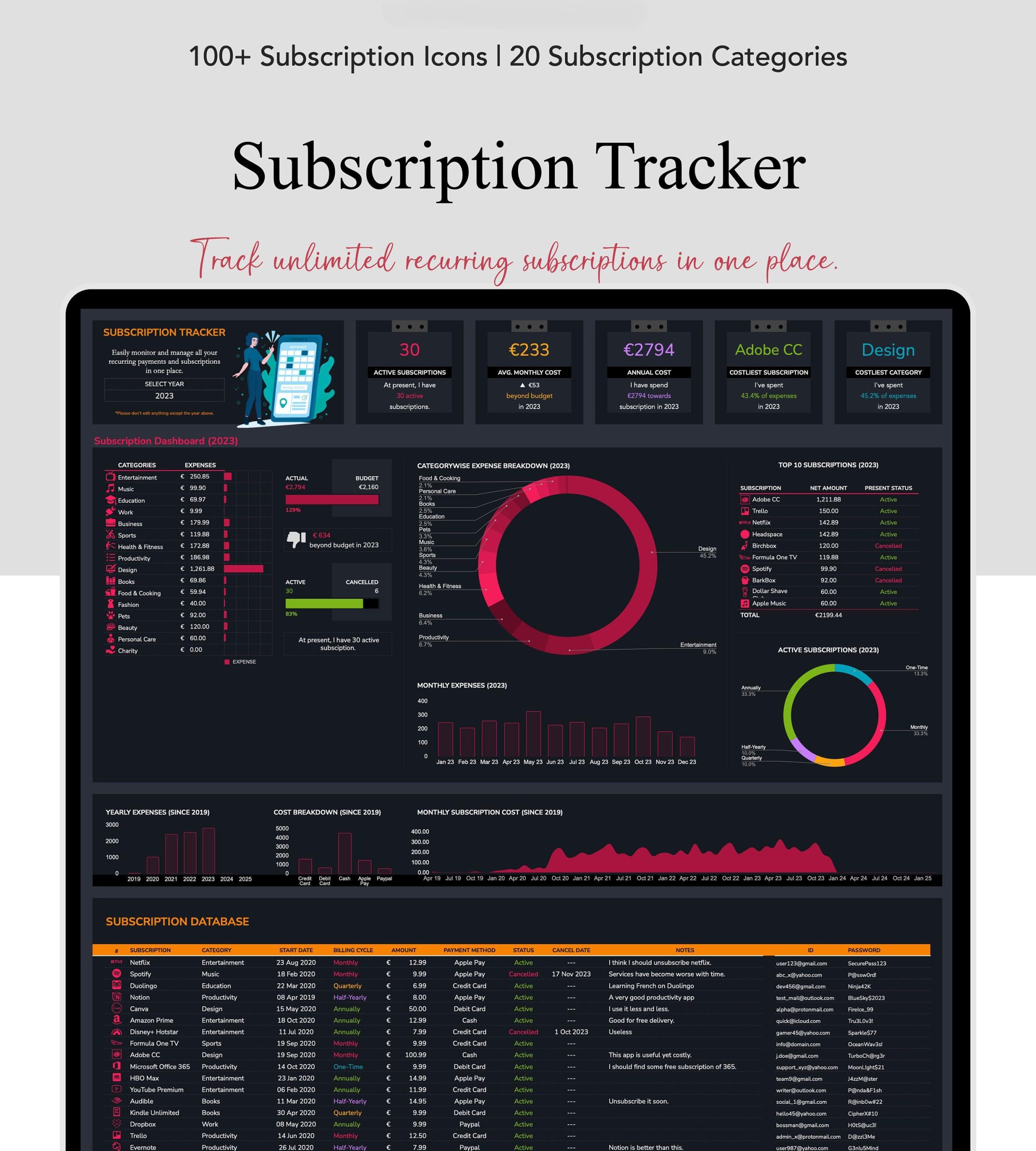 Stop using 5 different spreadsheets (or apps) for your money. This dashboard consolidates everything—50/30/20 budgeting, debt payoff (Snowball/Avalanche), sinking funds, bill tracking, subscription monitoring. 150+ auto-updating charts show your complete financial picture.