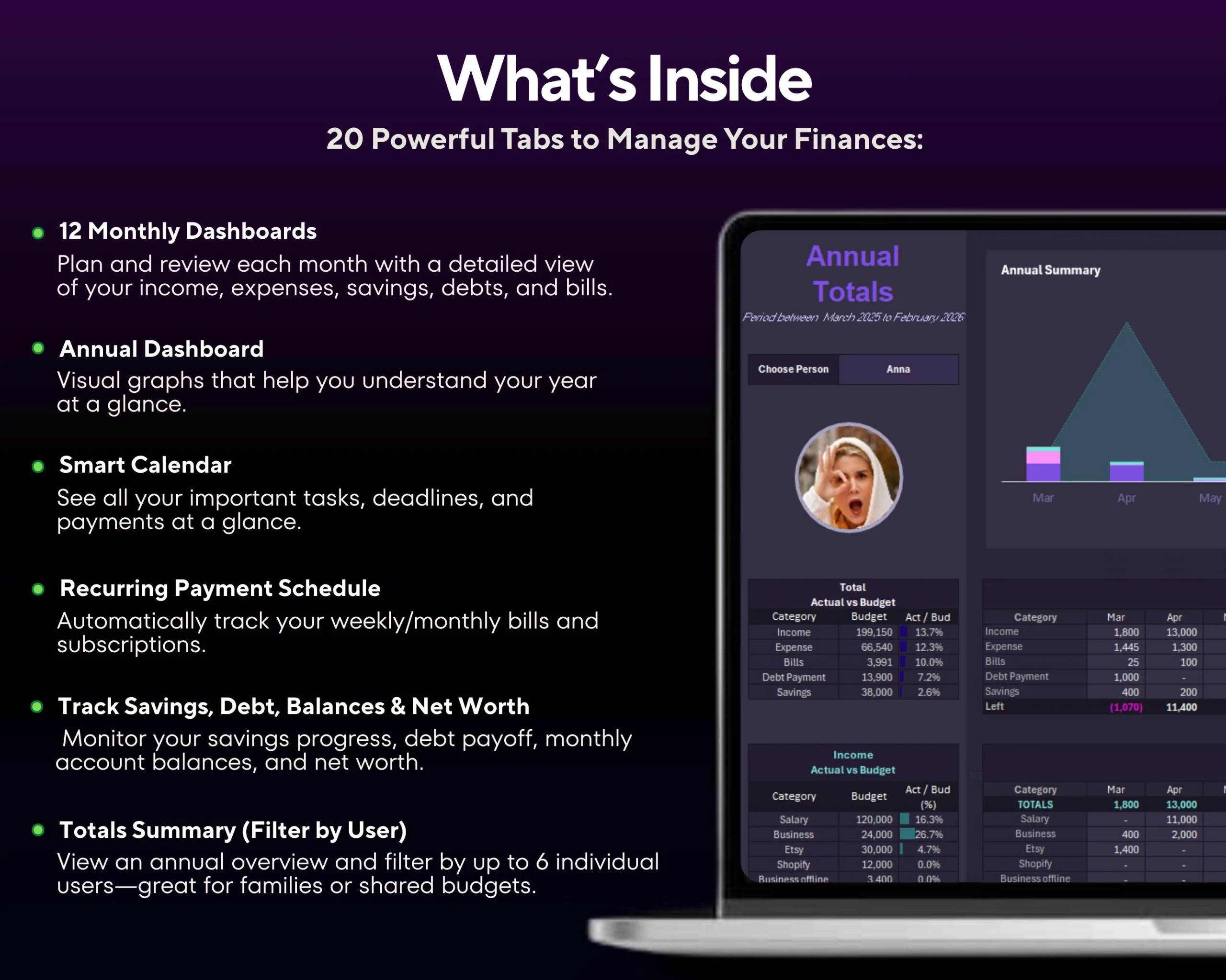 Annual Family Budget Tracker & Financial Planner Spreadsheet Google Sheets & Excel V4.6.8