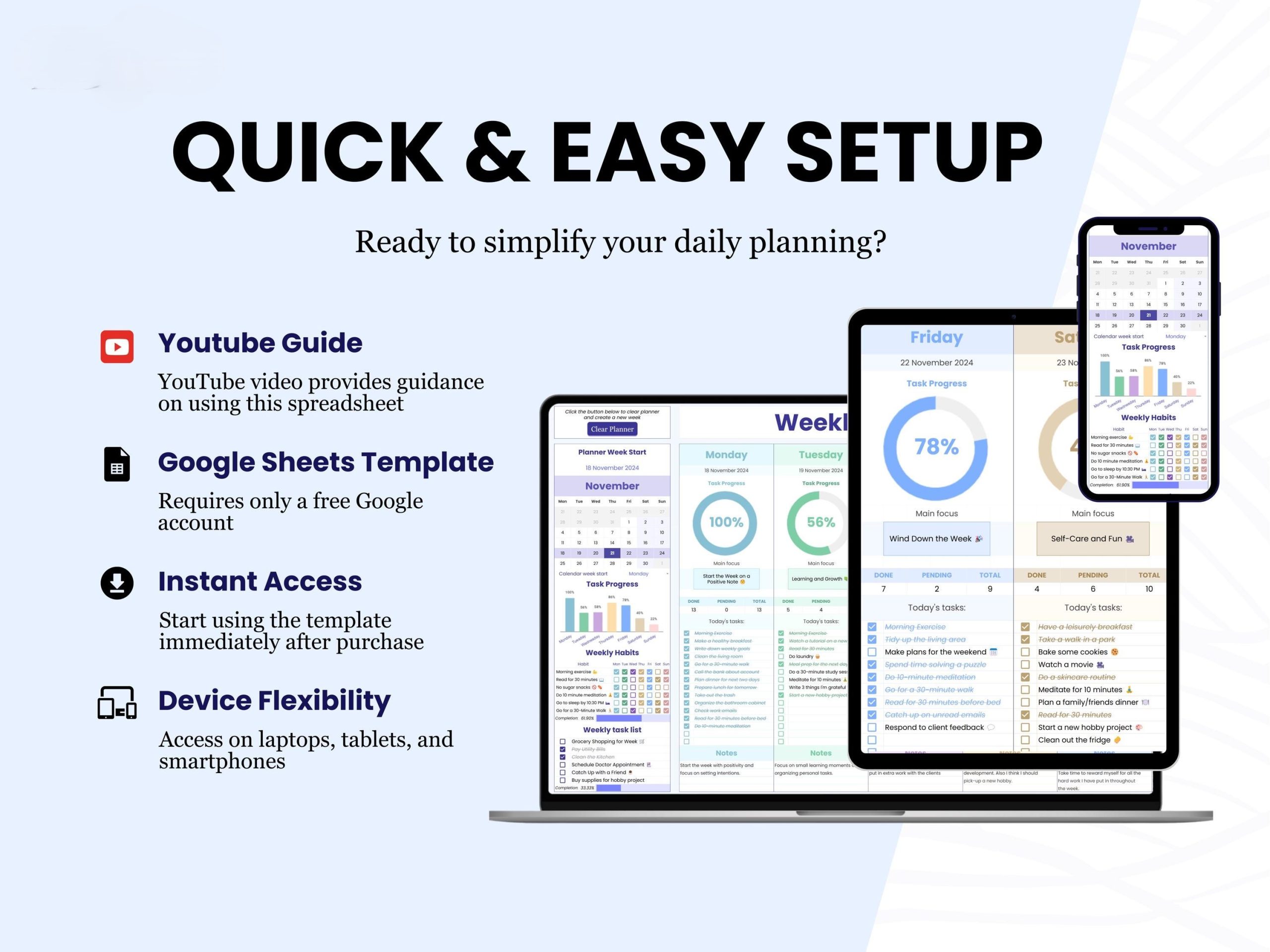 Weekly Planner, Daily Schedule Planner, Task Tracker, To Do List, Daily Checklist Google Sheets V2.4.3