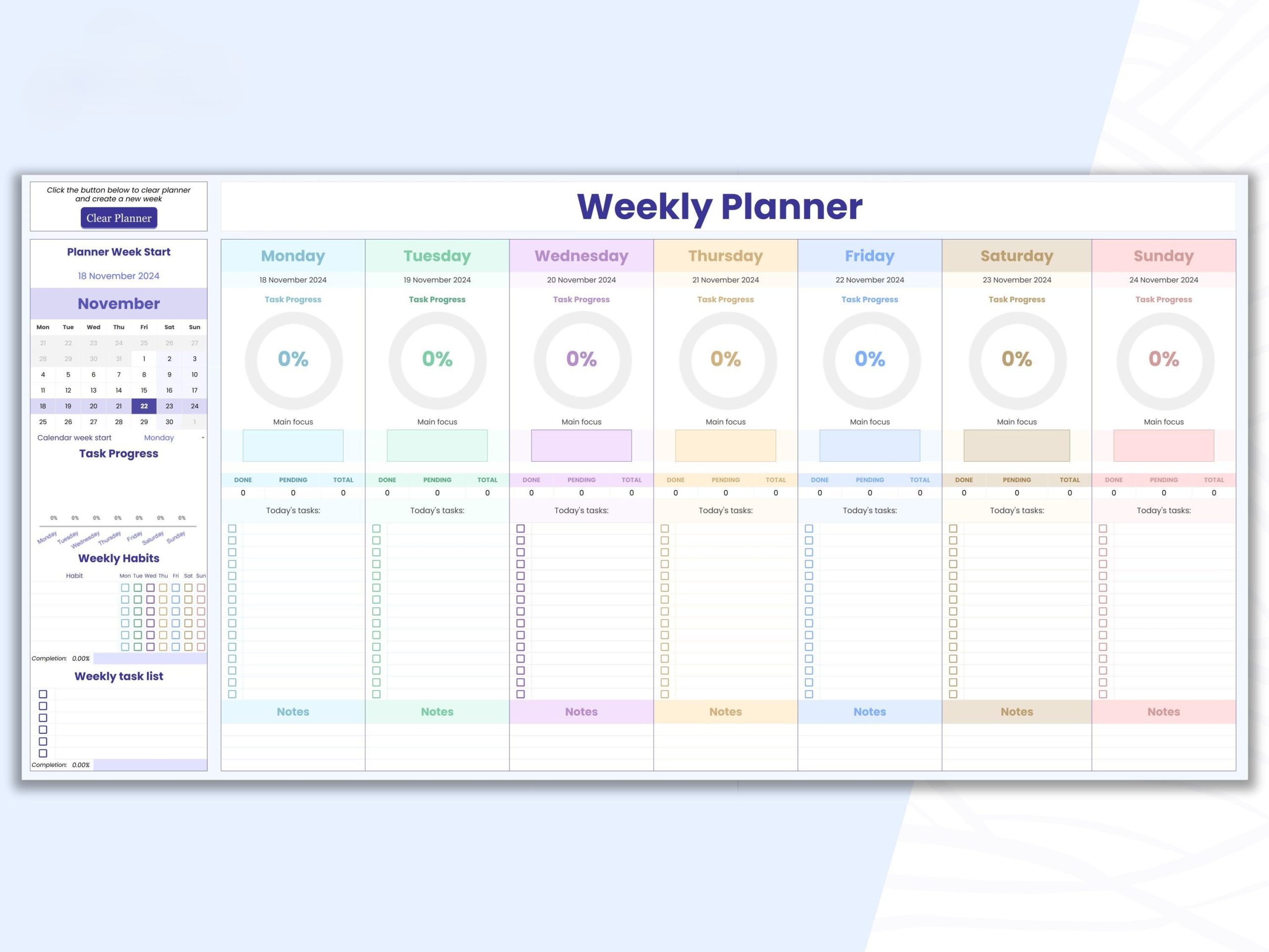 - ✅ One-click reset (start fresh every Monday)